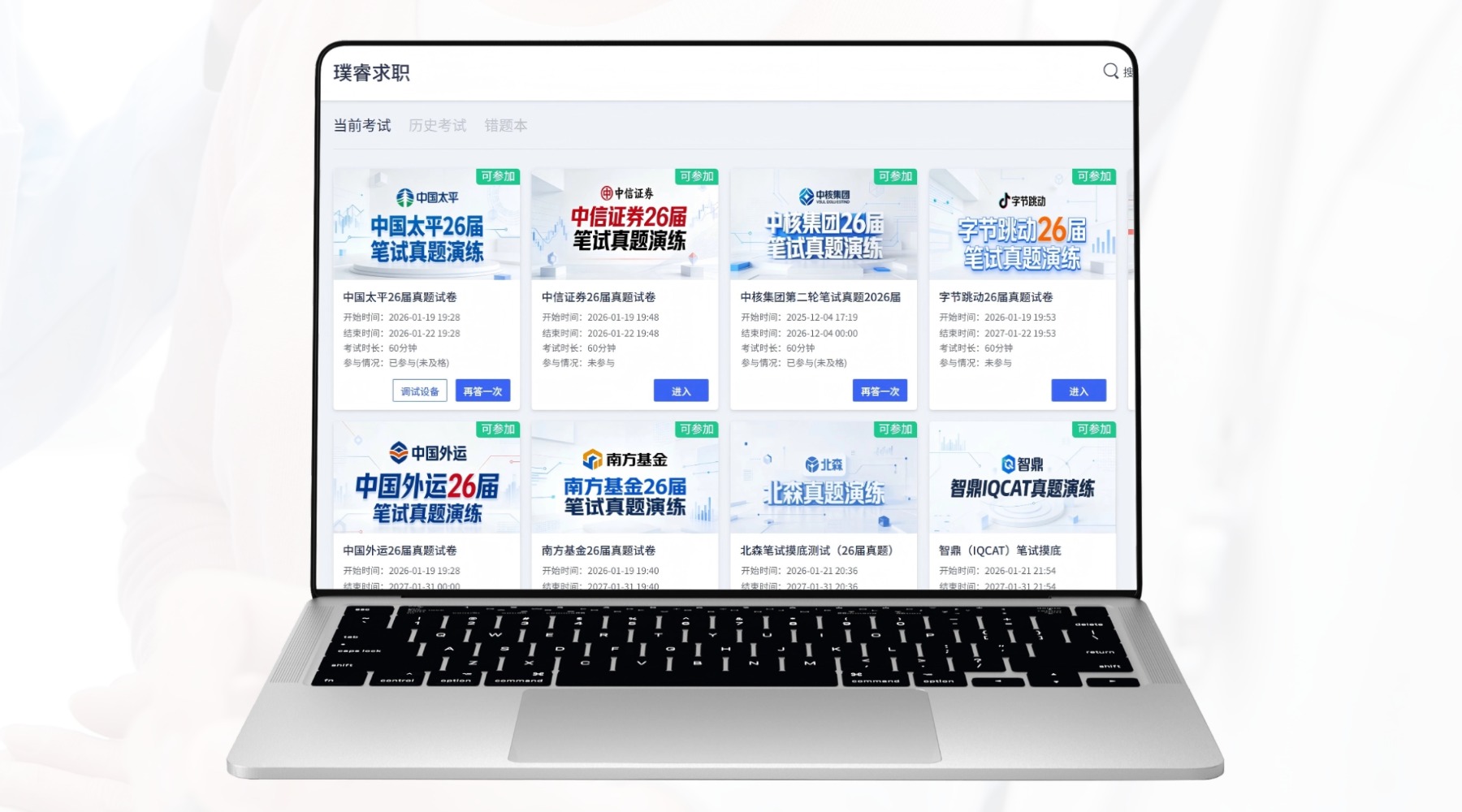 - 笔试平台为学员搭建真题模拟练习+沉浸式笔试体验+专业复盘分析+个性化提升建议的全链路笔试辅导体系。辅导老师会根据你的摸底结果制定针对性训练计划,确保你在笔试环节不被“一票否决”
